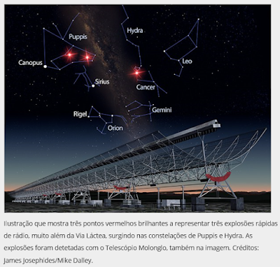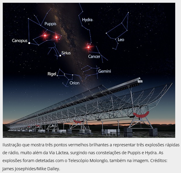 Manisha Caleb, estudante da Universidade Nacional da Austrália e a trabalhar na Universidade de Tecnologia de Swinburne, confirmou que as misteriosas explosões rápidas de rádio (fast radio bursts) que os astrónomos têm vindo a detetar ao longo dos últimos dez anos vêm efetivamente do espaço exterior.